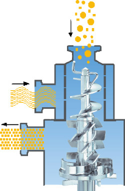 在线式水粉混合乳化设备是由进料腔体与乳化混合腔体构成,二者垂直安装。通过一个双层壁管道将液态物与固态物分别抽吸进去,避免了在进入主体部分前凝结成块。液体高速进入混颚式破碎机